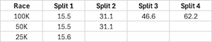 | Place | Div Place | Gen Place | Bib | First Name | Last Name | Gender | Age | City | State | Event | Division | Splits Complete | Gun Time | Status |